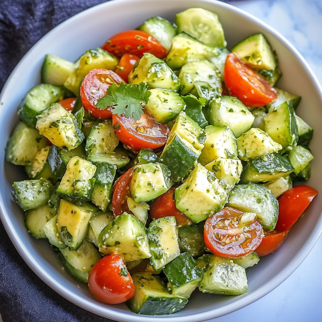 The beauty of cooking lies not just in the ingredients or the techniques, but in the stories we weave through each dish. Today, I’m thrilled to share a recipe that not only bursts with flavor but also encapsulates the joy of warm summer days and fresh produce—my Cilantro Lime Avocado Cucumber Salad with Tomatoes. This salad isn’t merely a blend of ingredients; it’s a vibrant celebration of life, reminding us of sun-drenched picnics and gatherings with loved ones. Imagine slicing into ripe avocados that yield perfectly to your knife, their creamy flesh melding beautifully with crisp cucumbers and juicy tomatoes, all drizzled with a zesty cilantro lime dressing that dances on your palate. The experience is utterly intoxicating, and I promise you, it will become a cherished part of your culinary repertoire.