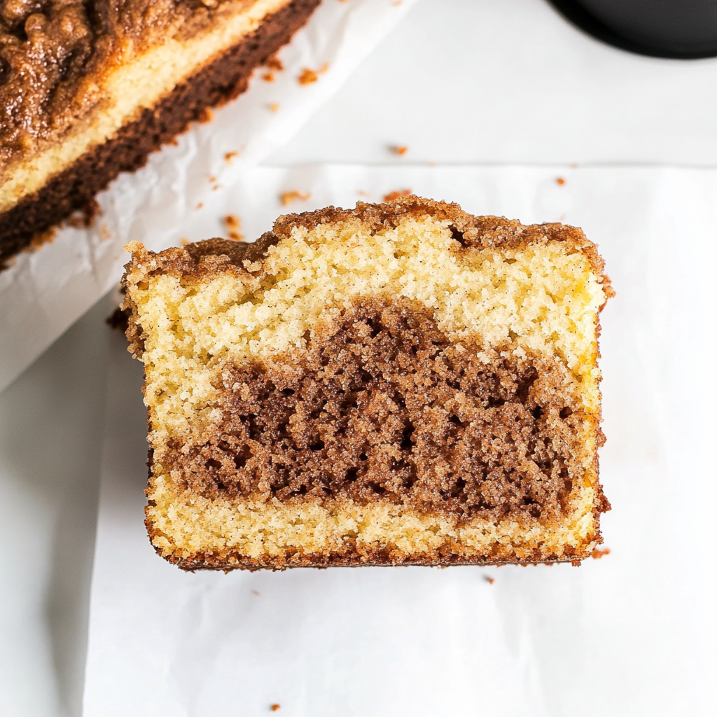 Grease or line an 8×8 baking dish with parchment paper. Pour half of your cake batter into the dish and spread it out evenly. Sprinkle half of that gorgeous cinnamon sugar filling on top and gently swirl it into the batter for an alluring look. Add another layer of batter followed by the remaining filling—swirl again for good measure!