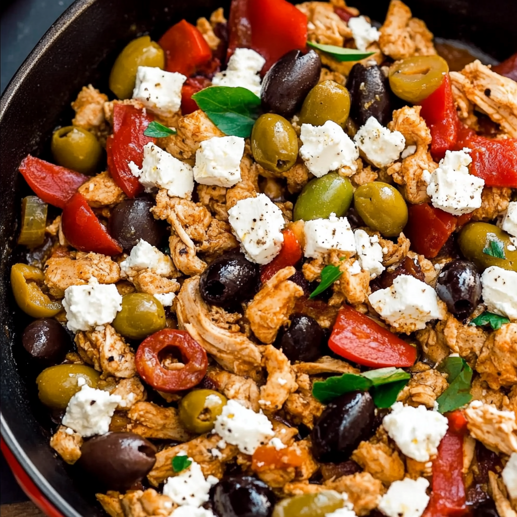 Enjoy a deliciously healthy Mediterranean Keto Ground Chicken Skillet with Olives and Feta—perfect for quick weeknight dinners. Try it today!